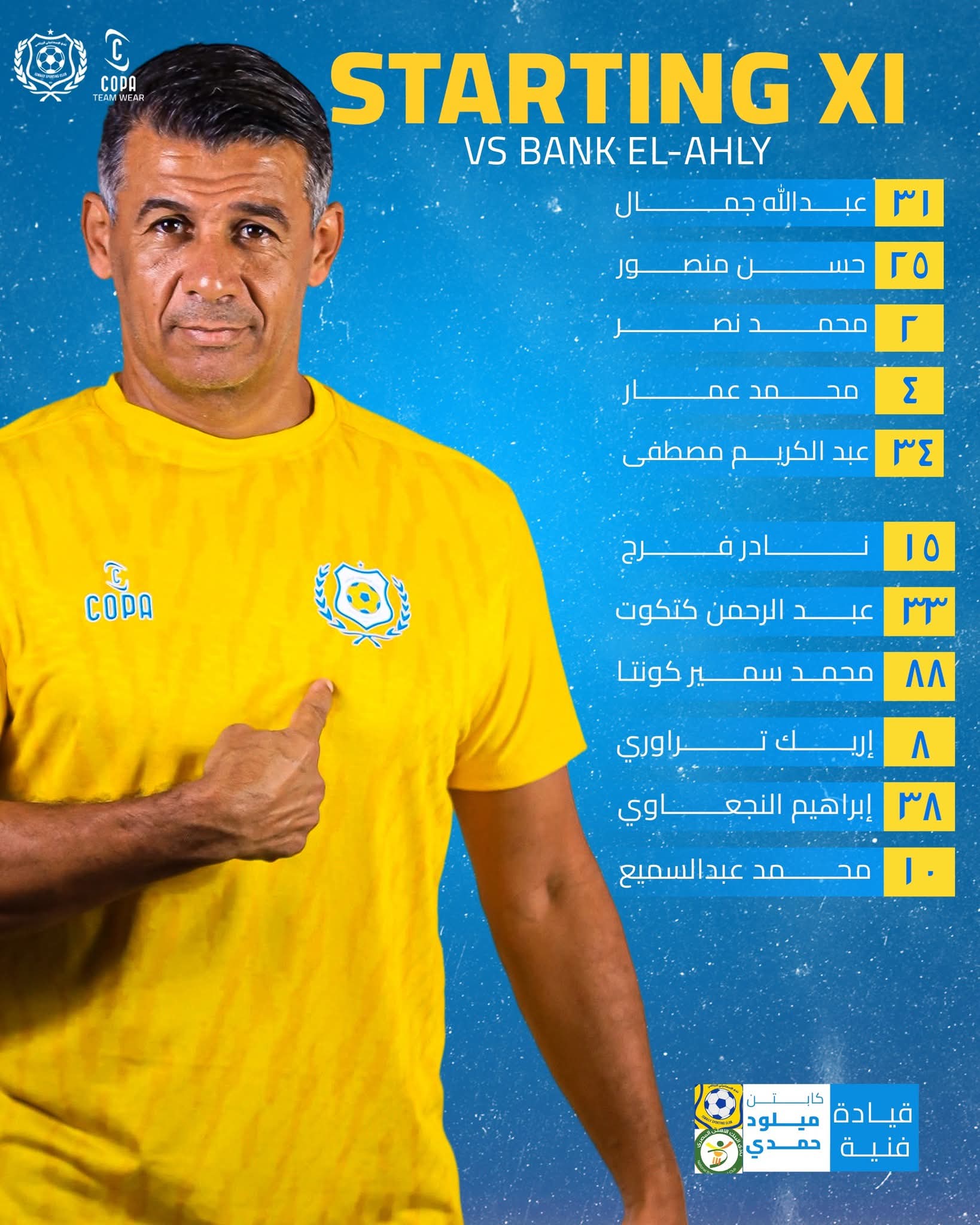 أعلن ميلود حمدي المدير الفني لفريق الكرة الأول للإسماعيلي تشكيل لاعبيه استعدادا لمواجهة البنك الأهلي بعد قليل لحساب منافسات مسابقة الدوري الممتاز.